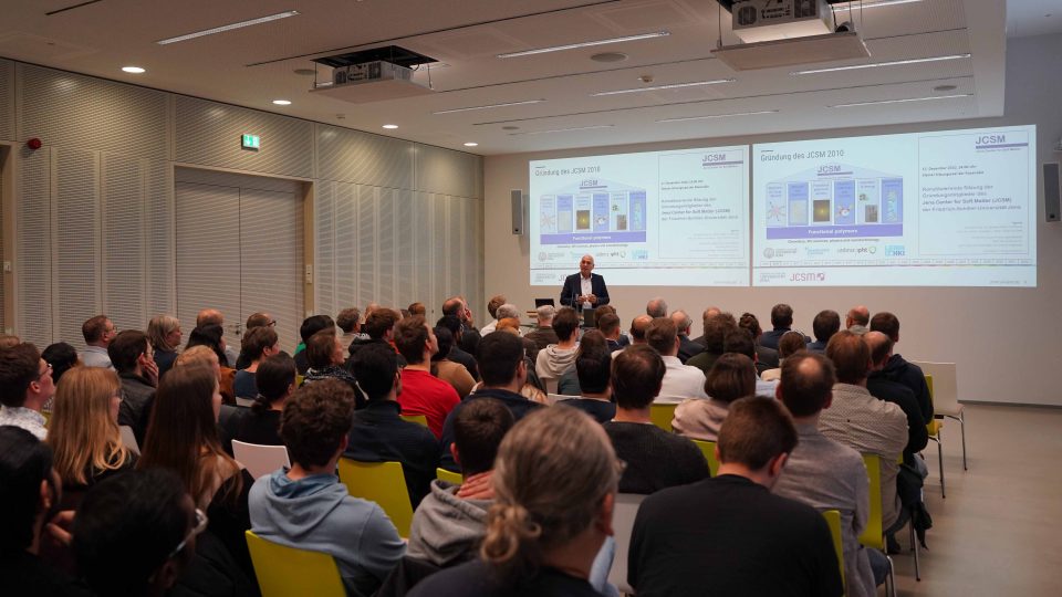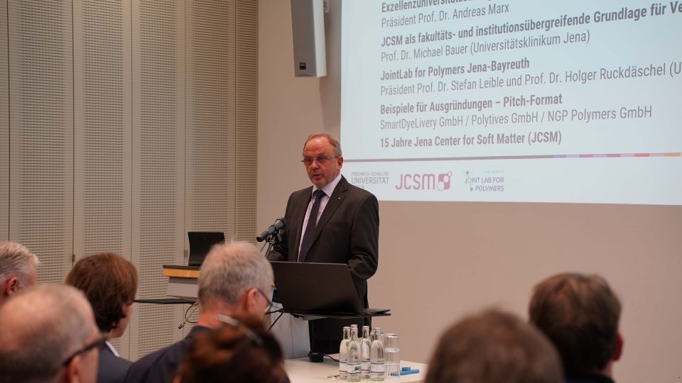 On 17 November, Friedrich Schiller University Jena celebrated the 15th anniversary of the Jena Center for Soft Matter (JCSM) with a festive event at the Centre for Applied Research (ZAF). More than 120 guests and members, including representatives from HIPOLE Jena, gathered to reflect on the centre’s development and to look ahead to future prospects for soft matter research in Jena.
