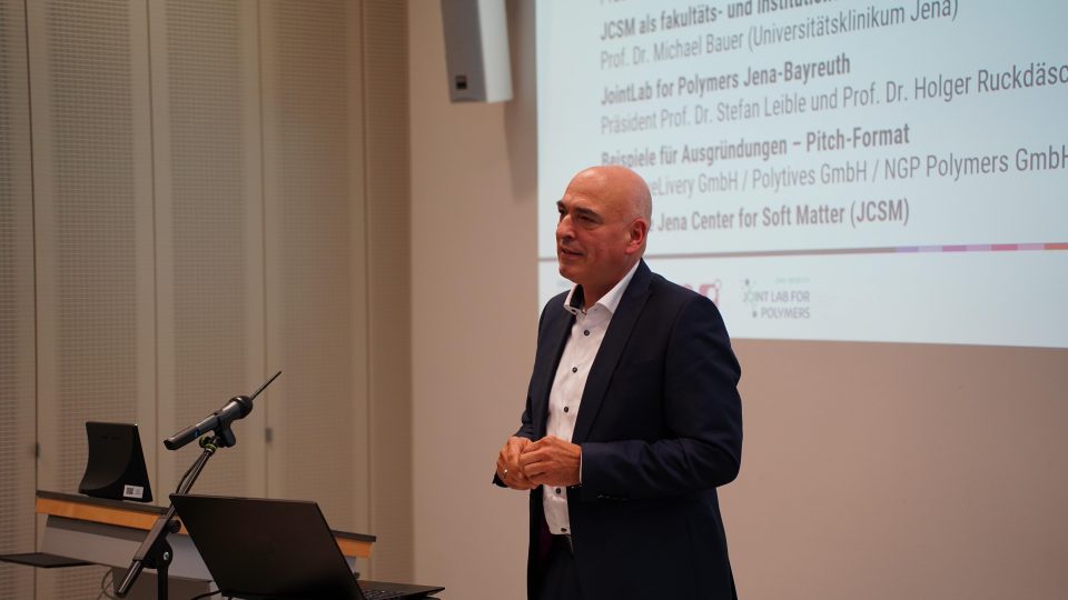 While Prof. Dr. Michael Bauer from Uniklinikum Jena (UKJ) emphasized the importance of interdisciplinary cooperation, Prof. Dr. Stefan Leible, President of the University of Bayreuth, and Prof. Dr. Holger Ruckdäschel (University of Bayreuth) highlighted successful collaborations using examples from joint projects between Jena and Bayreuth.