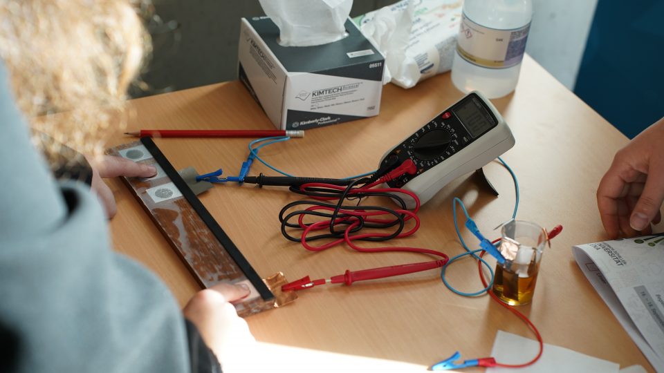 Visitors had the chance to see firsthand how different metal combinations produce varying voltages, learn about the fundamental structure of a battery, and even become part of a “finger battery” themselves.