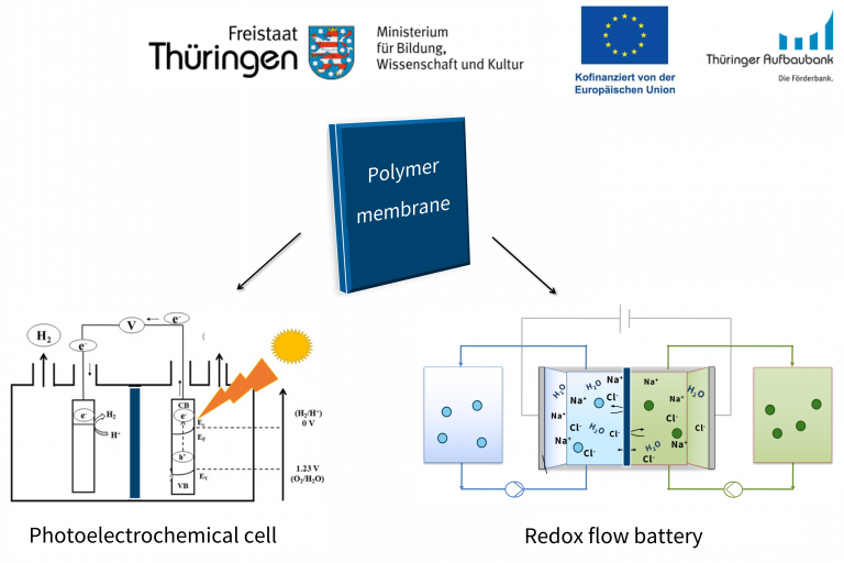 We are therefore investigating fluorine-free polymer membranes for aqueous organic redox flow batteries (RFBs) and photoelectrochemical cells (PECs) for hydrogen production and glycerol oxidation. The research groups of Prof. U. S. Schubert, Prof. Yan Lu, Prof. Felix Schacher and Dr. Marco Favaro joined forces and combined their expertise in polymer synthesis, membrane characterization, batteries and PECs to enable these new developments.