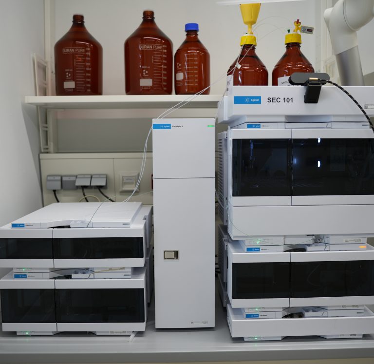 Für die Erforschung neuer Polymere ist die Bestimmung der Molmassen und Massenverteilungen mittels Größenausschlusschromatographie (SEC) ein grundlegender Charakterisierungsschritt, um die Synthesebedingungen zu optimieren und die Polymereigenschaften für zukünftige Anwendungen innerhalb von HIPOLE Jena anzupassen.