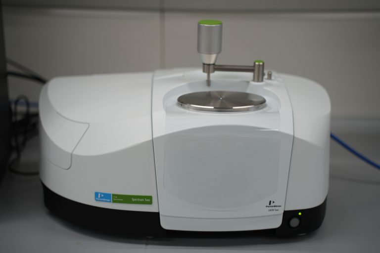 Für die Forschung an neuen Materialien bei HIPOLE Jena wird deren Charakterisierung mittels Infrarotspektroskopie (IR) mit einem ATR-IR-Spektrometer durchgeführt.