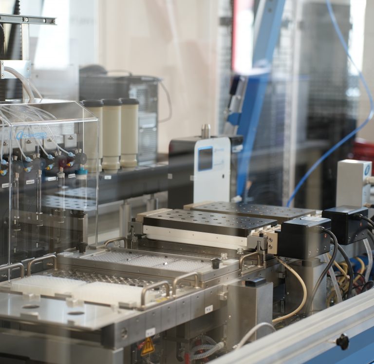Für die beschleunigte Entwicklung neuer Polymere und Materialien setzt HIPOLE Jena auf Hochdurchsatzsynthese und KI-gesteuerte Methoden. Daher wird ein Syntheseroboter für die automatisierte Parallelsynthese von Polymeren und Materialien mit der Möglichkeit der Integration von Charakterisierungsdaten zur Steuerung und Überwachung chemischer Reaktionen auf der Grundlage KI-gestützter Methoden eingesetzt.