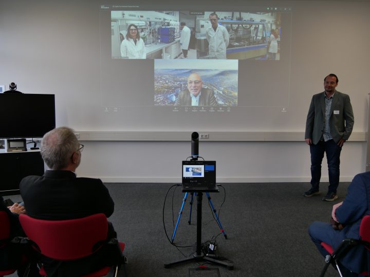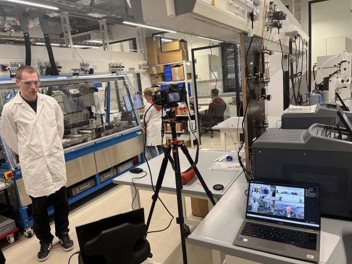 Prof. Dr. Martin Keller, neuer Präsident der Helmholtz-Gemeinschaft, hat sich am Montag im Rahmen der Center Tour einen weiteren Eindruck von der Forschung am Helmholtz-Zentrum Berlin (HZB) verschafft, diesmal am Standort Wannsee. Auch HIPOLE Jena als Teil des HZB stellte sich dort vor. Die Tour führte live vom Standort Wannsee bis in die Labore nach Jena.