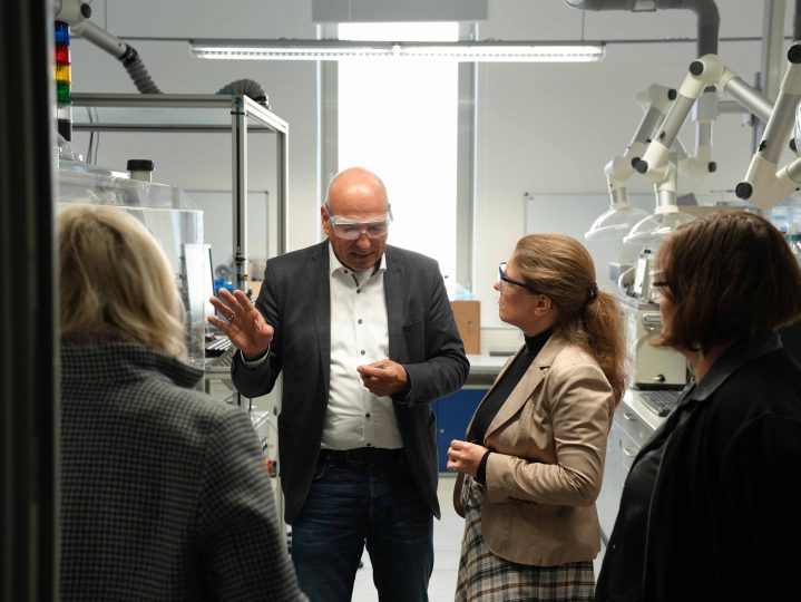 Der Besuch bot die Möglichkeit, sich persönlich kennenzulernen und HIPOLE Jena ausführlich vorzustellen. Im Rahmen einer Führung durch unsere Räumlichkeiten, einschließlich des CEEC Jena an der FSU Jena, konnten sich die Gäste ein umfassendes Bild von unserer Arbeit machen. Anschließend gab es Raum für intensive Diskussionen mit Prof. Dr. Ulrich S. Schubert, Maria Haupt, Dr. Martin Hager, Prof. Dr. Doreen Mollenhauer und Prof. Dr. Ivo Nischang.